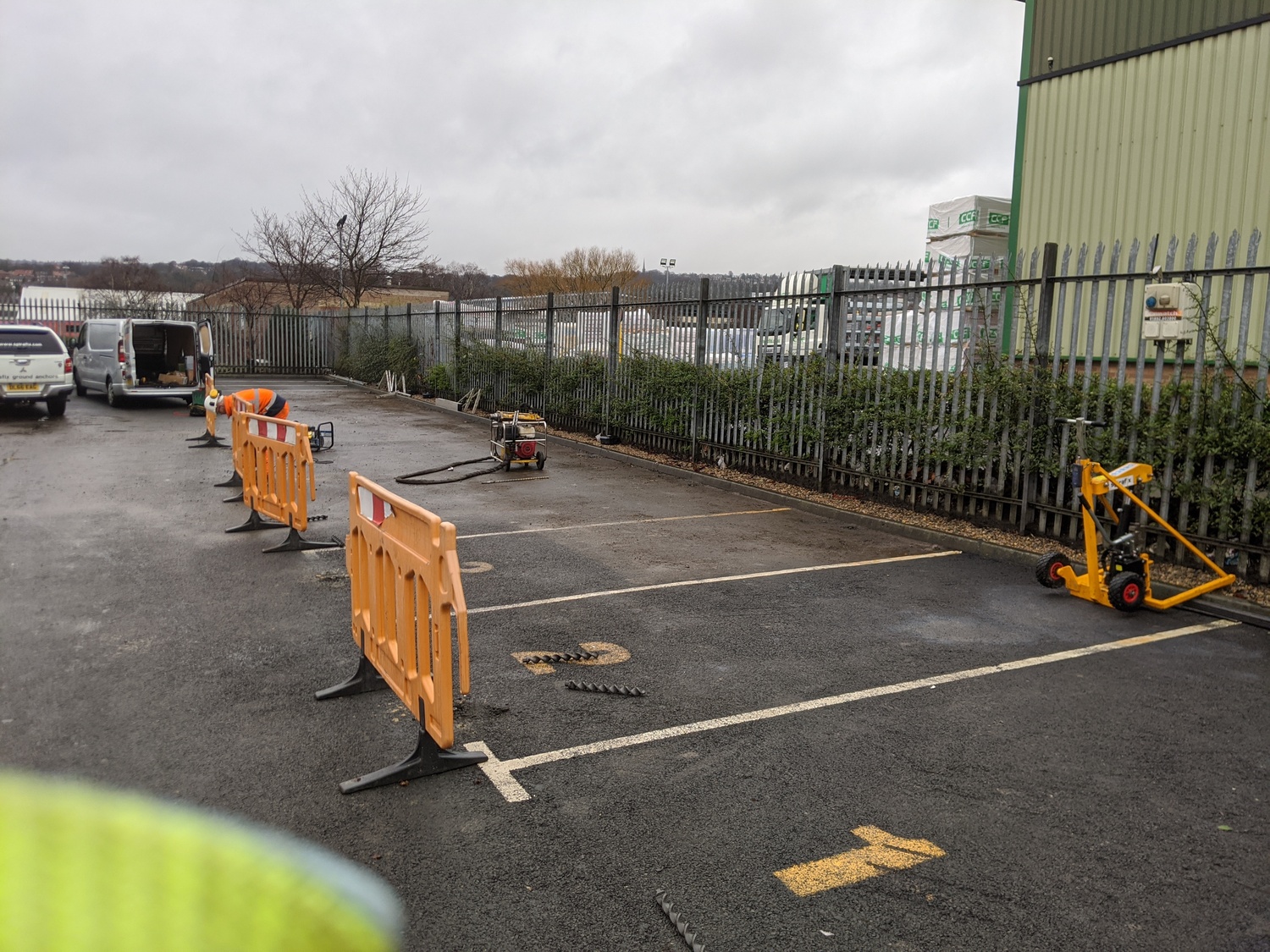 Installing ground anchors for use to secure storage containers can be a very cost efficient way of implementing a foundation system without little to no damage or impact to the existing landscape. The photo above shows a tarmac area where the anchors were installed. Spirafix anchors work for for both permanent and temporary installations, get in touch with our team to find out what method of fixing and anchor size may be best suited to your needs.