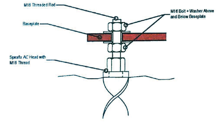 Anchors were secured to triangular slotted base plate suitable for M16 bolted connection. This made it easy to install, align and remove once project was completed.