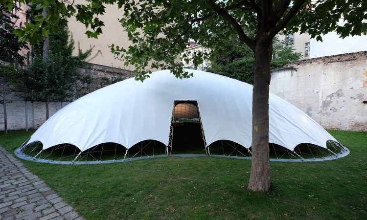 A pioneering pavillion which investigates the use of air filled cushions to rapidly, safely and cheaply erect beautiful and structurally efficient elastic gridshells for events and humanitarian causes.