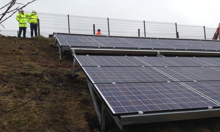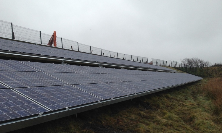 Utilising uneven embankment space to create a ground mounted solar panel area.