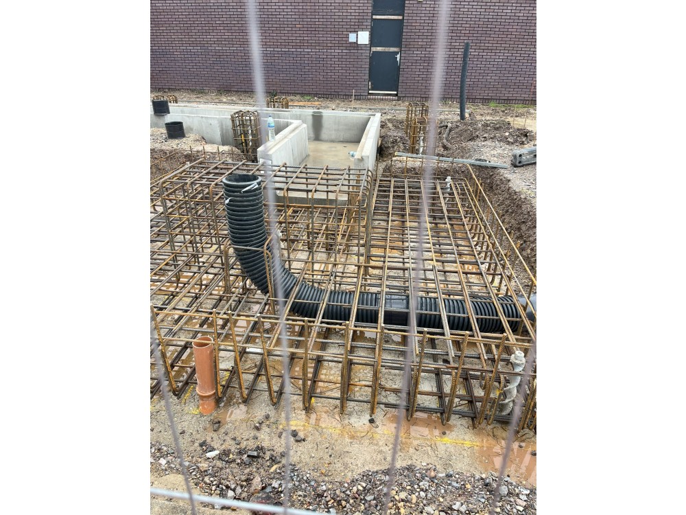 The Spirafix team used our hydraulic piling rig to install 75mm ground anchors, leaving them protruding 300mm above ground level for encasement with rebar and concrete. These anchors were then tested to Custom Solar's specified loading requirements prior to the construction of the small power supply station to be installed by others.