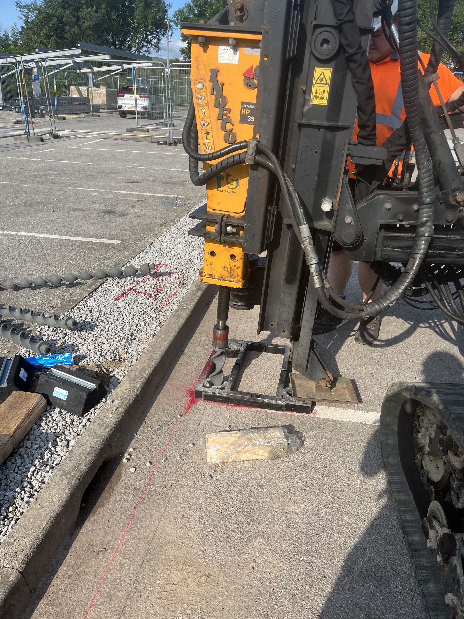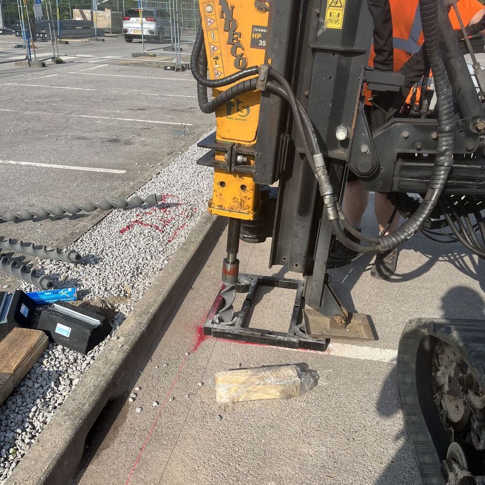 Once the appropriate sized Spirafix ground anchor had been specified and quotes for supply/installation had been finalised, the Spirafix team returned to site to install the anchors for the upcoming solar carport structure.