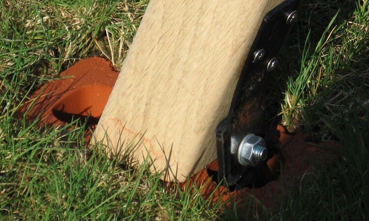 The Spirafix Kit SK311 presented an easy solution to this issue and is now frequently supplied by Sitting Spiritually with their frames & rope swings. They have also discovered an inventive way of using the anchors whilst also protecting the end grain on the timber on the legs (shown on the photo).