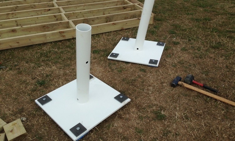 To provide a means of securing 5 leaning columns for a temporary bar for Moet & Chandon at the America's Cup event in Portsmouth. Anchoring system had to be quick to install and remove. Leaving no trace after removal an advantage as no remedial work time had been allowed.