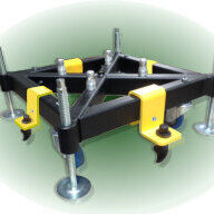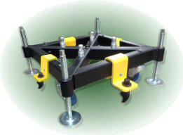 You will need 4 brackets and 4 anchors per stage truss base. The brackets (SA540 for Milos/Prolyte systems or SA693 for Eurotruss bases) are fitted to the base and a bolt is inserted from the front to the back, once this is tightened it holds the bracket in position securely.